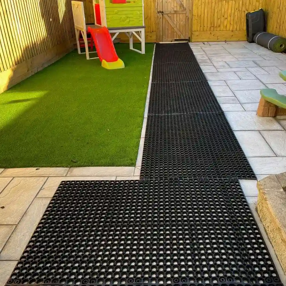 We offer heavy-duty industrial rubber mats (15mm to 45mm thickness) for warehouses, factories and high-traffic areas. These mats provide anti-slip safety, shock absorption and floor protection against heavy loads. Custom sizes and colours are available on request.